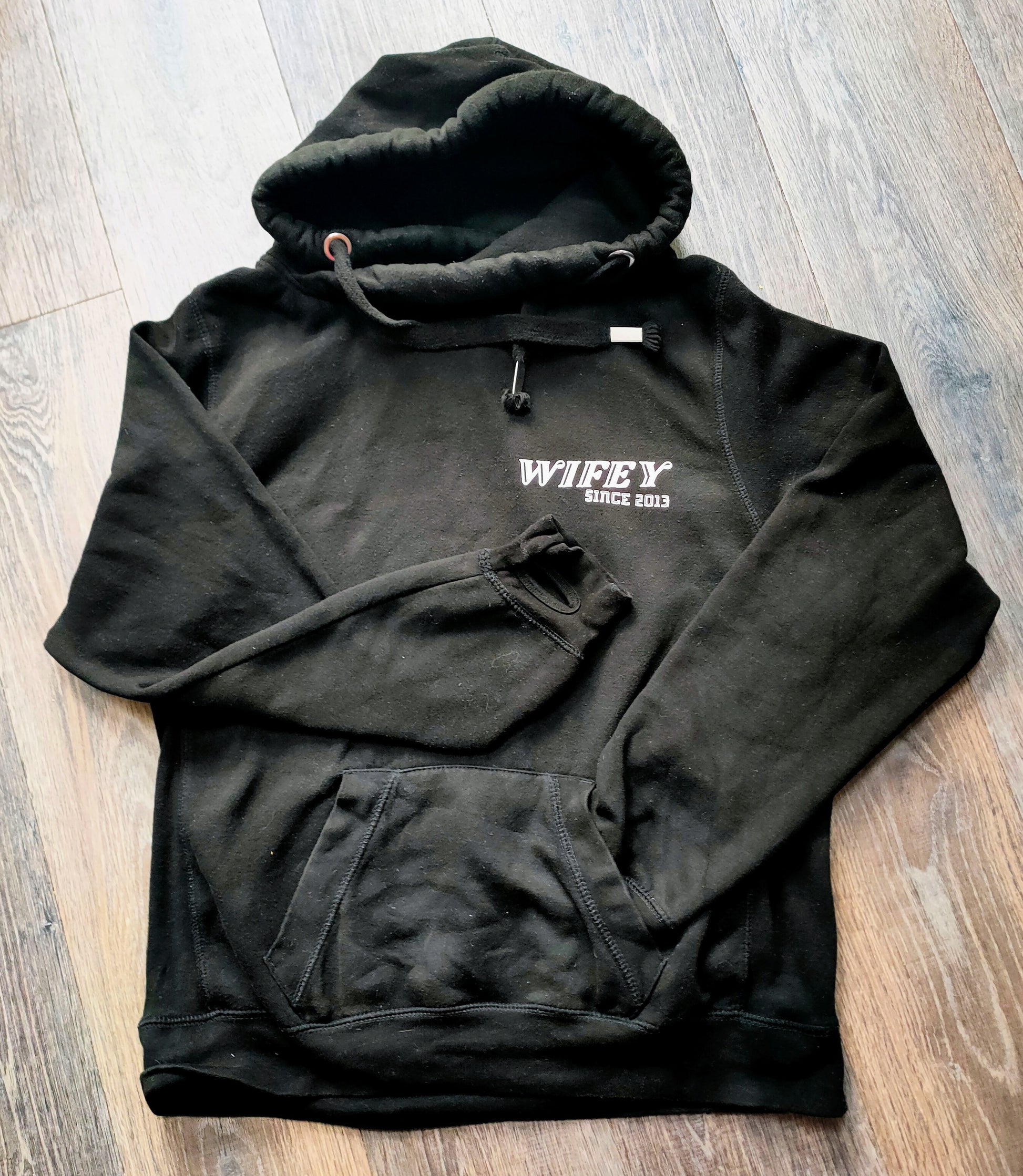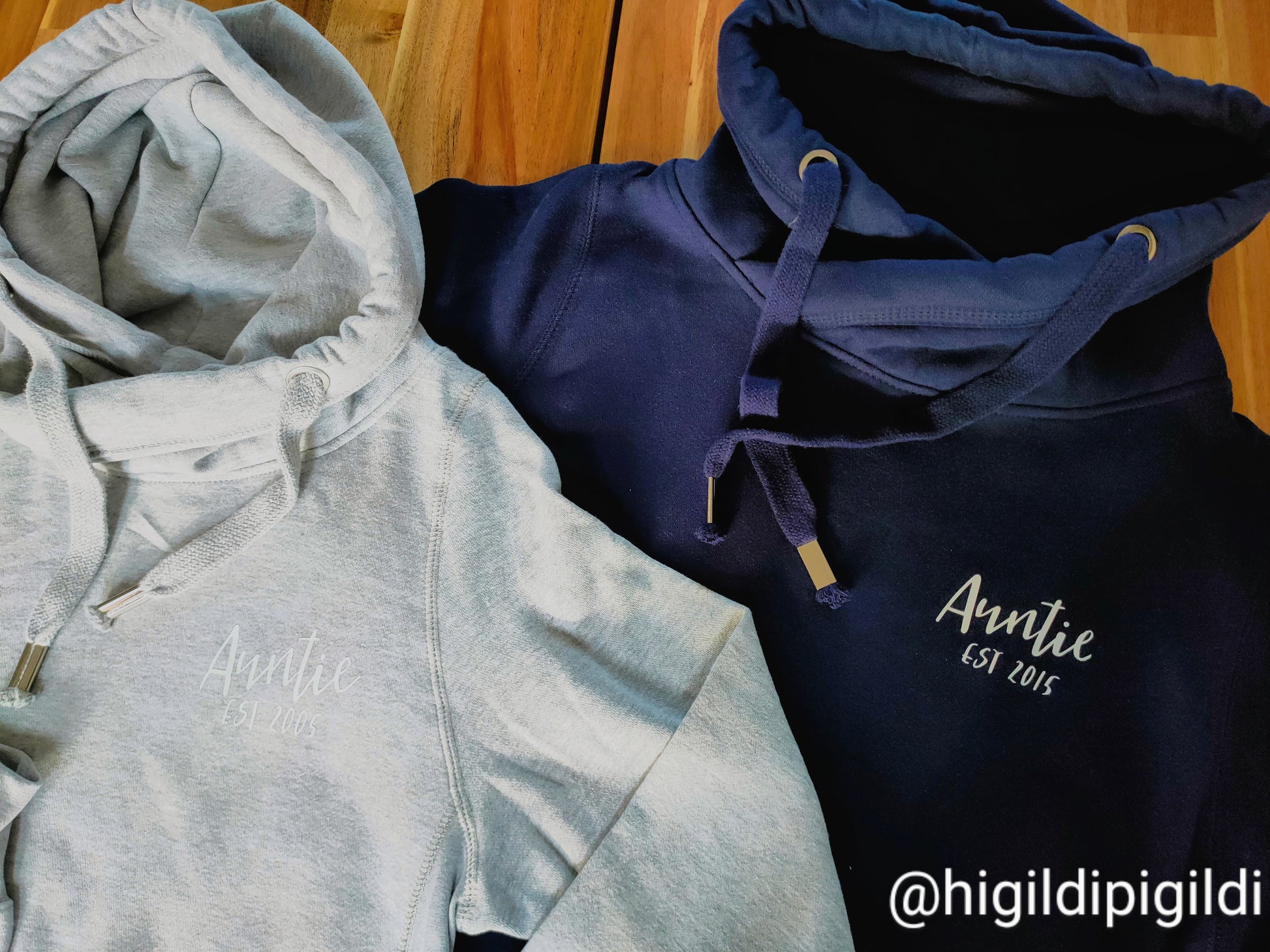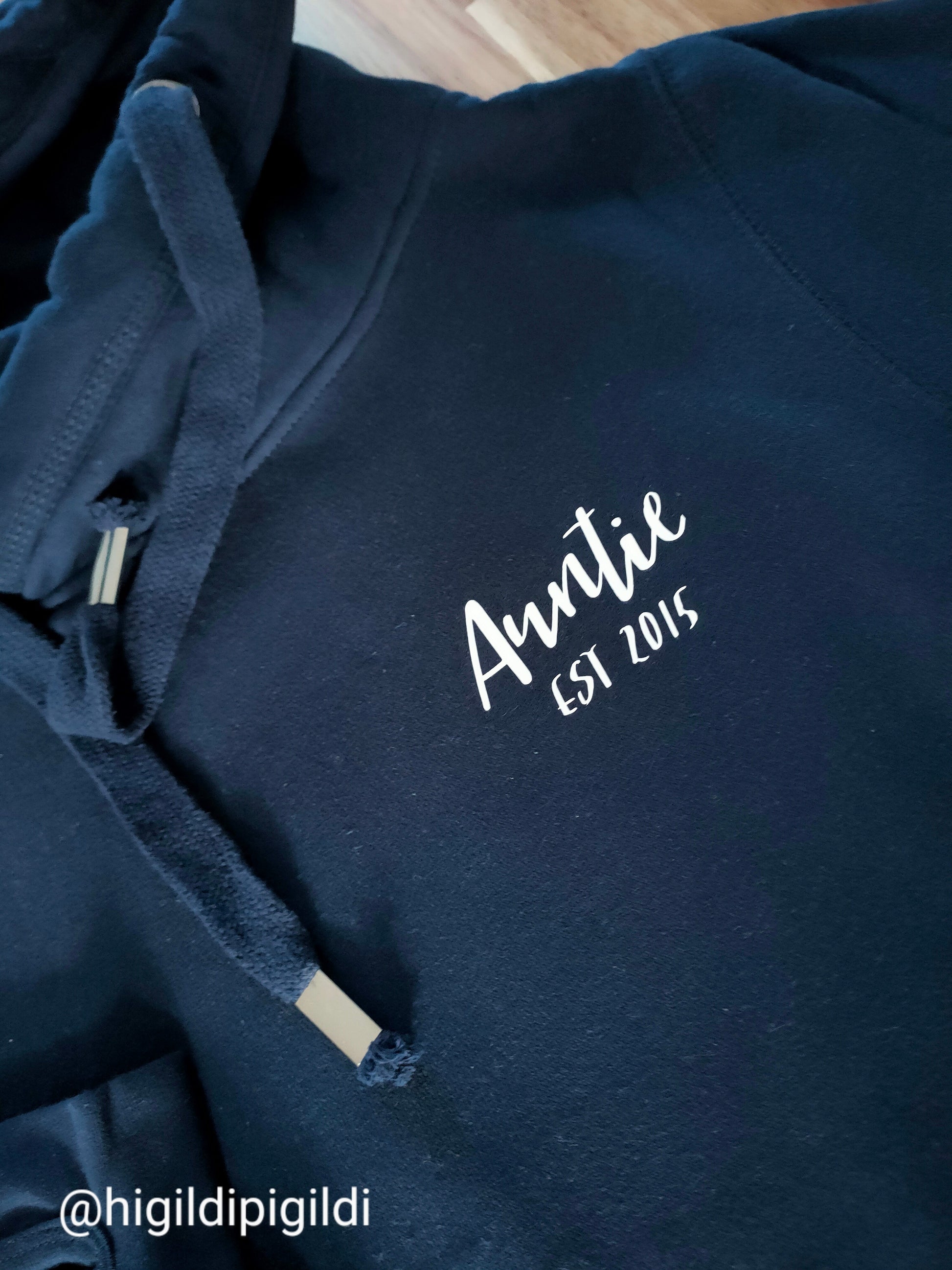 Ideal as a gift, our "(family member) est (year)" logo adds a personal touch to celebrate your family and the memories made with them. Crafted from soft and cosy cotton faced fabric with brushed back fleece, this sweatshirt has a drop shoulder design, a three panel double fabric hood with flat lace drawcord, crossover neck detail, a front pouch pocket, ribbed cuffs and hem, and thumbholes on the cuffs. Available in sizes XS - XXL, made from 70% ring spun cotton/30% polyester, and weighing 330 gsm.