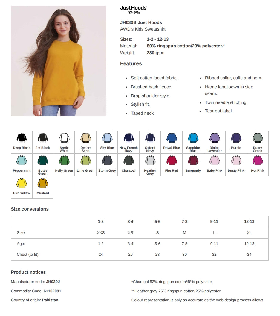 Select from a wide selection of colours and personalize with your choice of design. Ideal for gifts, add a unique touch with your own hand-drawn or handwritten elements. Constructed with 80% ring spun cotton and 20% polyester, and also available in a soft cotton faced fabric. Boasts a brushed back fleece, drop shoulder design, and a stylish fit. Includes ribbed collar, cuffs, and hem, as well as a taped neck and twin needle stitching. Features a tear out label for convenience.