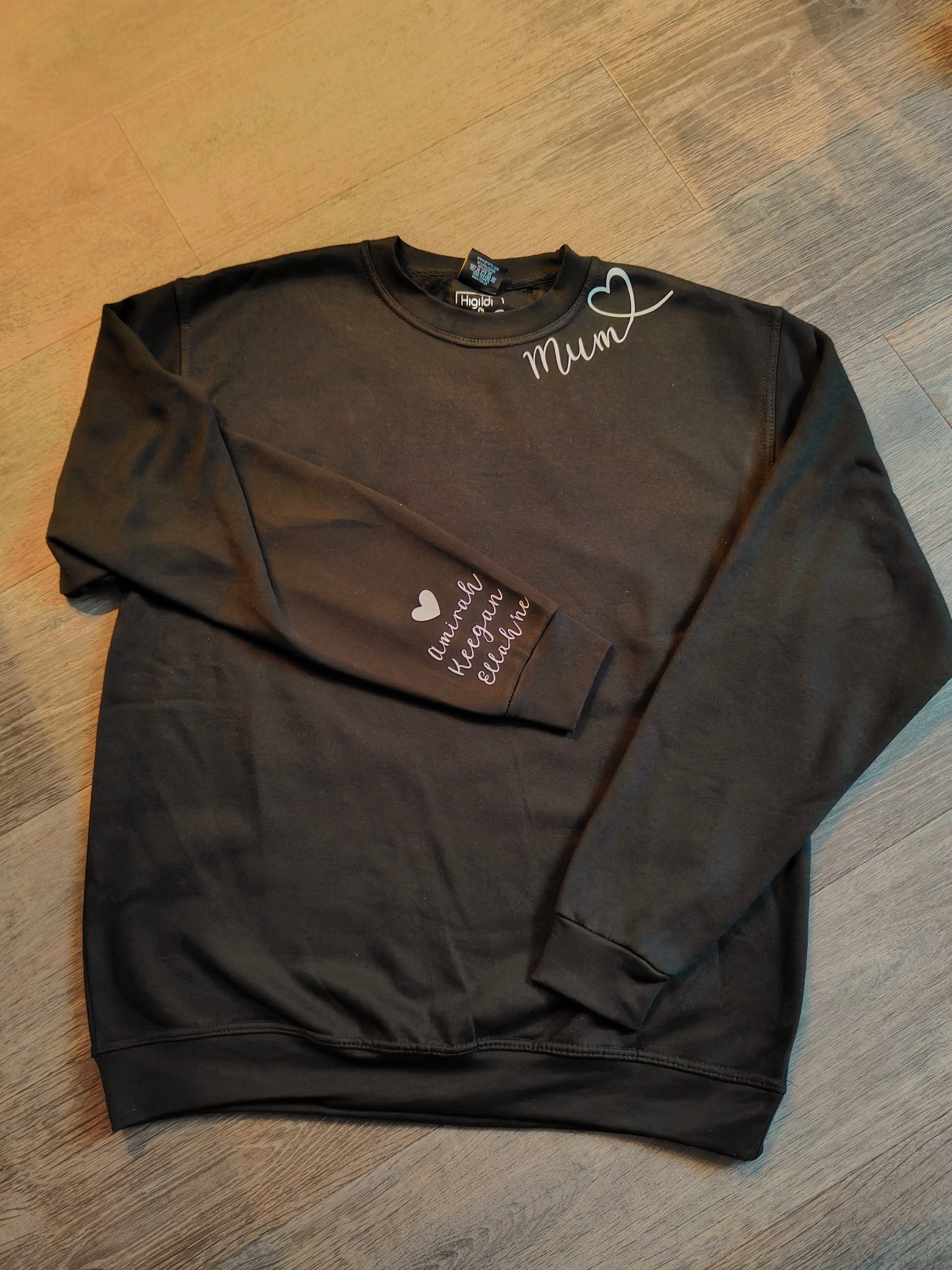 Our most popular design! Especially for special days like Mothers/Fathers day and birthdays. Make your loved ones feel special with this beautiful designed sweatshirt, you can even add other family members names on the sleeve for no added cost. Crafted from a blend of 80% ring spun cotton and 20% polyester, it is made of soft cotton faced fabric with brushed back fleece. It boasts a drop shoulder design, ribbed collar, cuffs and hem, and reinforced taped neck for increased longevity.